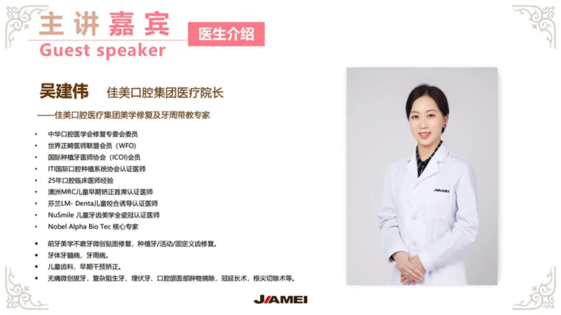 佳美口腔始建于1993年,是中國第一家連鎖經(jīng)營的大型現(xiàn)代化口腔醫(yī)療機構(gòu)。佳美口腔采用世界口腔醫(yī)療前沿技術(shù),擁有系列自主知識產(chǎn)權(quán)和國內(nèi)高水平的口腔醫(yī)療專家醫(yī)療隊伍和專家級的運營管理團隊,突破了國內(nèi)傳統(tǒng)醫(yī)療服務模式,以二十七年的從業(yè)背景和雄厚的醫(yī)護技術(shù)資源開展專業(yè)的口腔醫(yī)療項目。目前,佳美口腔在國內(nèi)各大城市擁有數(shù)十家直營連鎖門診,終身會員突破百萬,其口腔醫(yī)療的案例和數(shù)據(jù)庫成為全國第一。