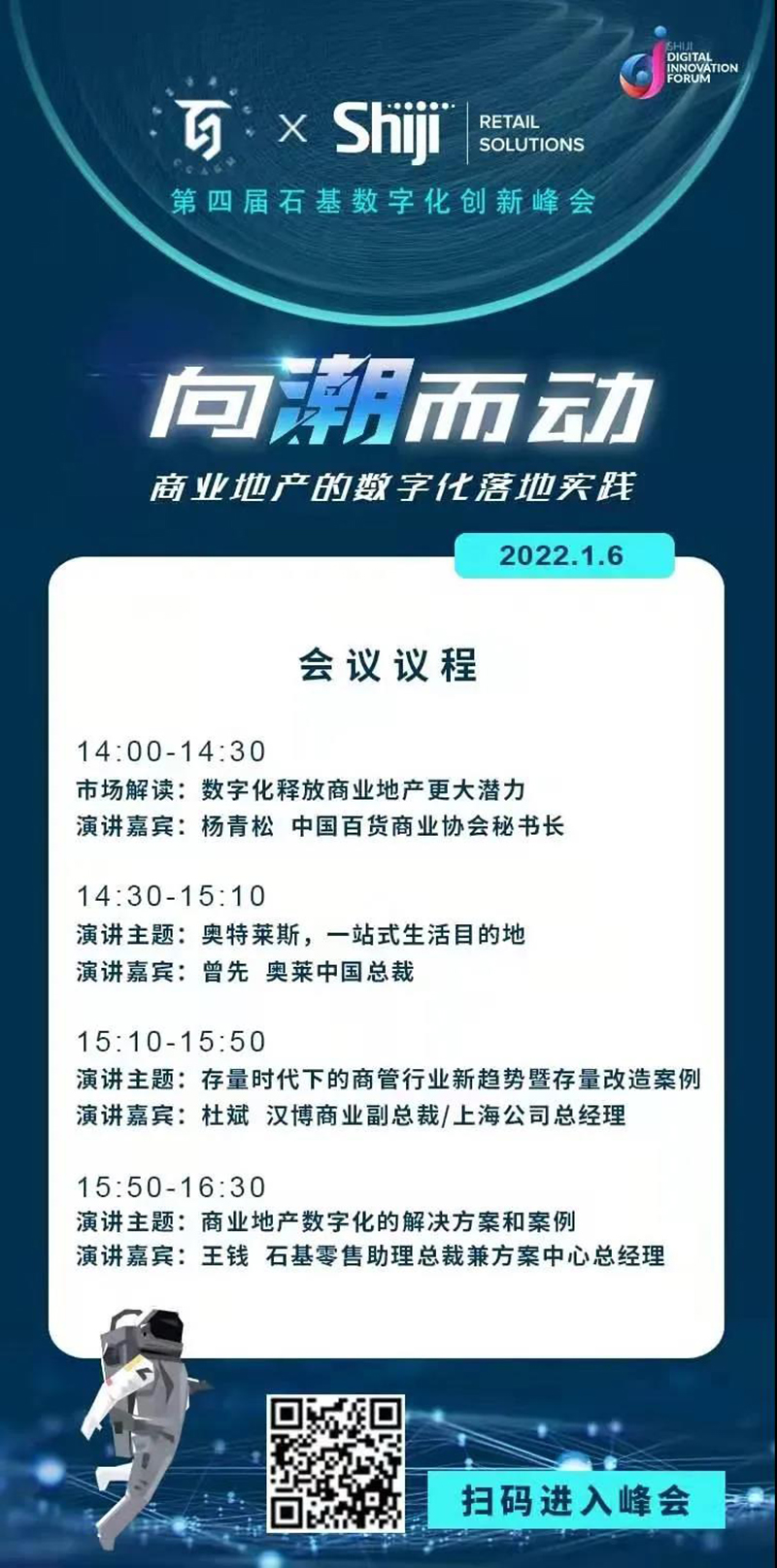 2022年1月6日,由中國百貨商業(yè)協(xié)會(huì)和石基零售共同主辦的 “商業(yè)地產(chǎn)數(shù)字化落地實(shí)踐”線上研討會(huì)正式召開,奧特萊斯(中國)有限公司總裁受邀參加,并進(jìn)行了有關(guān)《奧特萊斯,一站式生活目的地》的主題演講。