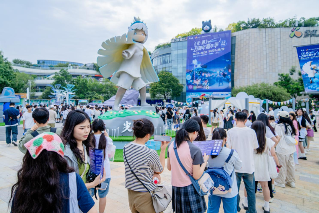 今年6月29日,融合項(xiàng)目AAA潮玩公園的定位,聚焦青年客群,在全球注冊用戶超2億、擁有諸多國際獎項(xiàng)的全年齡療愈系社交冒險游戲在成都大悅城落地呈現(xiàn)《光·遇》五周年嘉年華慶典的全球首展,開啟了為期2個月的主題活動。
