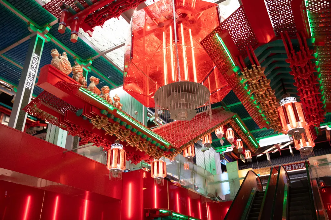 同樣,定位為國內(nèi)首個「新國潮」購物中心的北京·王府井喜悅,依托“中國核,潮流殼”的定位概念融合傳統(tǒng)文化與現(xiàn)代審美,運(yùn)用大量中國傳統(tǒng)文化素材進(jìn)行創(chuàng)意設(shè)計,同時通過人工智能、大數(shù)據(jù)等技術(shù)解決購物中心數(shù)智痛點(diǎn),是一座推動藝術(shù)、文化和科技跨界融合的城市地標(biāo)。