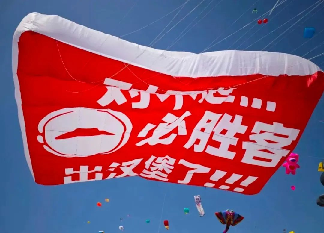 去年的風(fēng)箏節(jié),眾多品牌紛紛參與“發(fā)瘋營銷”的浪潮,將這一傳統(tǒng)活動推向了新的高峰。在風(fēng)箏節(jié)期間,淘寶連續(xù)兩年推出的巨型“放屁”風(fēng)箏成為焦點。這種打破常規(guī)、充滿娛樂性的廣告方式,不僅吸引了眾多目光,更讓年輕人在歡笑中釋放了壓力。而必勝客則通過簡潔的大字報形式,宣布“必勝客推出漢堡”,這種直接而簡單的營銷手段,同樣給人留下了深刻的印象。