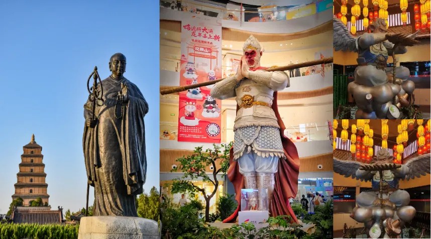 以西安大悅城為例,他深挖大唐、長安歷史文化底蘊(yùn),與在地城市地標(biāo)形成呼應(yīng),中庭悟空與大雁塔玄奘雕像隔街對(duì)望,并打造契合潮流時(shí)尚客群訴求的“勿空”美食街區(qū)與“不戒食巷”,街區(qū)內(nèi)的墻體上還有師徒四人取經(jīng)歸來的立體壁畫,讓原本只以美陳形式存在的孫悟空、豬八戒變成文化傳播的紐帶。