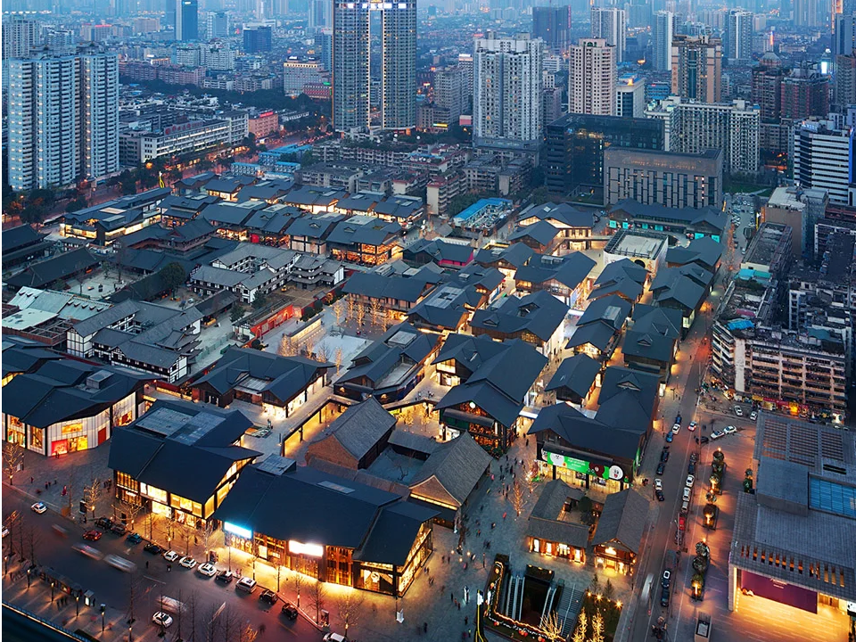 正如隈研吾所言:“在地性不是對傳統(tǒng)的復制,而是讓建筑成為土地呼吸的器官”。成都遠洋太古里不僅完整保留了大慈寺片區(qū)6條歷史街巷(如筆帖式街、惜字塔巷等),還修復了廣東會館、欣廬等6座川西古建筑,通過“修舊如舊”手法重現(xiàn)“解玉溪”水系景觀,形成“一寺一城”的時空對話。建筑外立面采用川西青瓦坡屋頂與現(xiàn)代玻璃幕墻結合,檐口高度與街道寬度比例嚴格控制在1:1,營造“街巷有度”的步行體驗。